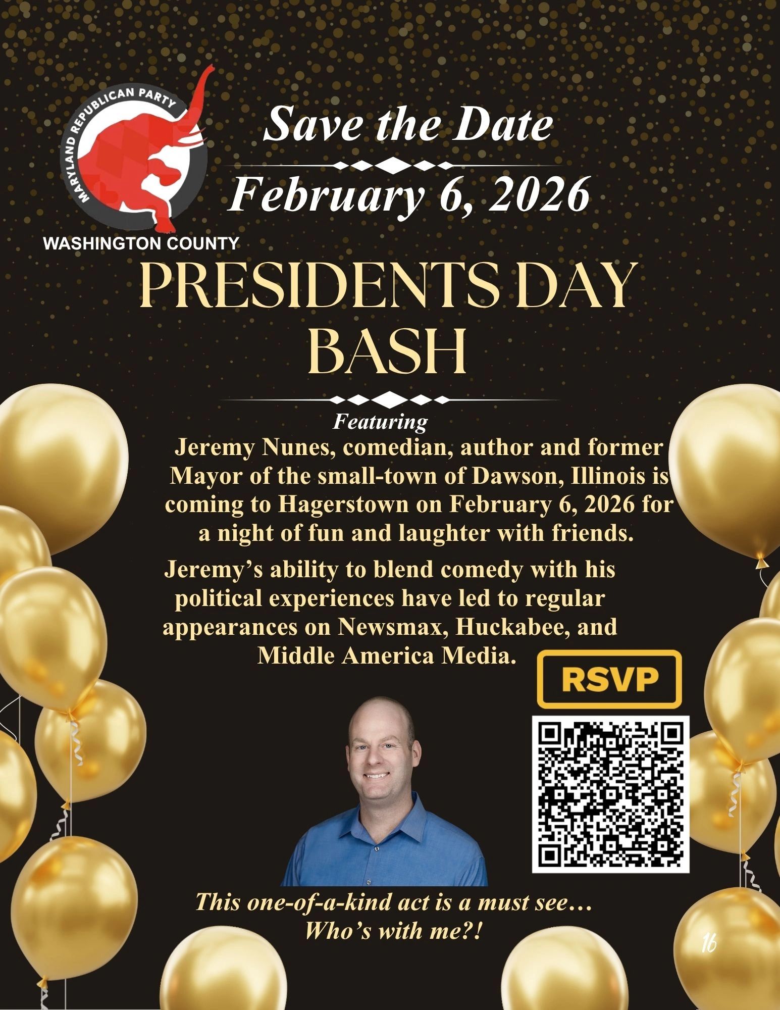 Jeremy Nunes, comedian, author and former Mayor of the small-town of Dawson, Illinois is coming to Hagerstown on February 6, 2026 for a night of fun and laughter with friends.
